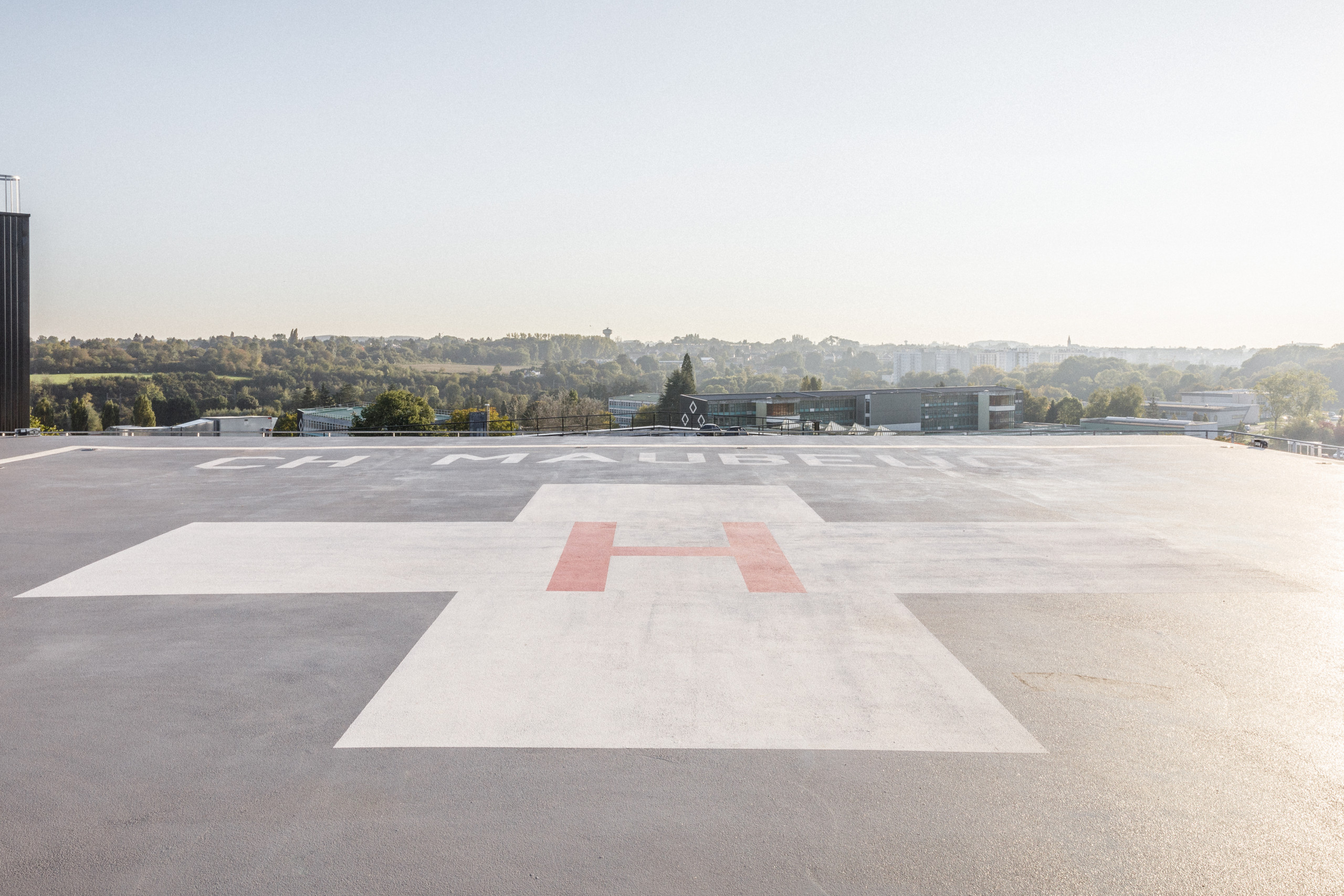 Le nouvel hôpital de Maubeuge est un bâtiment compact qui s’élève à R+2 au-dessus d’un rez-de-jardin qui s’inscrit dans la pente naturelle du site. Le projet résout deux équations : la complexité et la diversité du programme hospitalier et le traitement urbain de l’entrée est de la ville de Maubeuge.