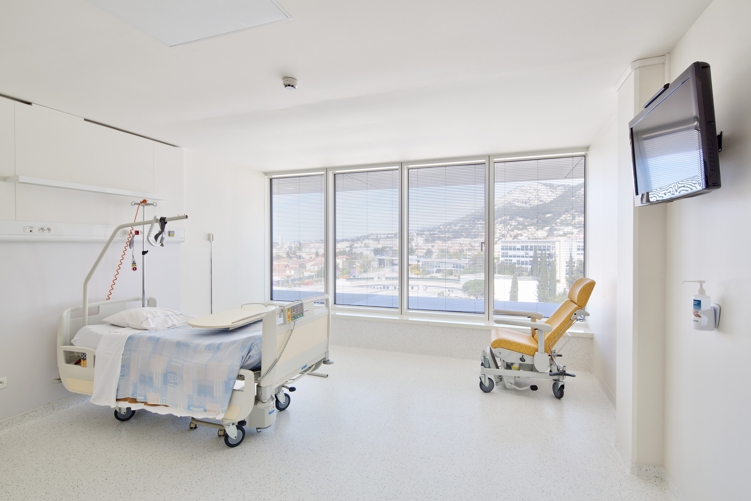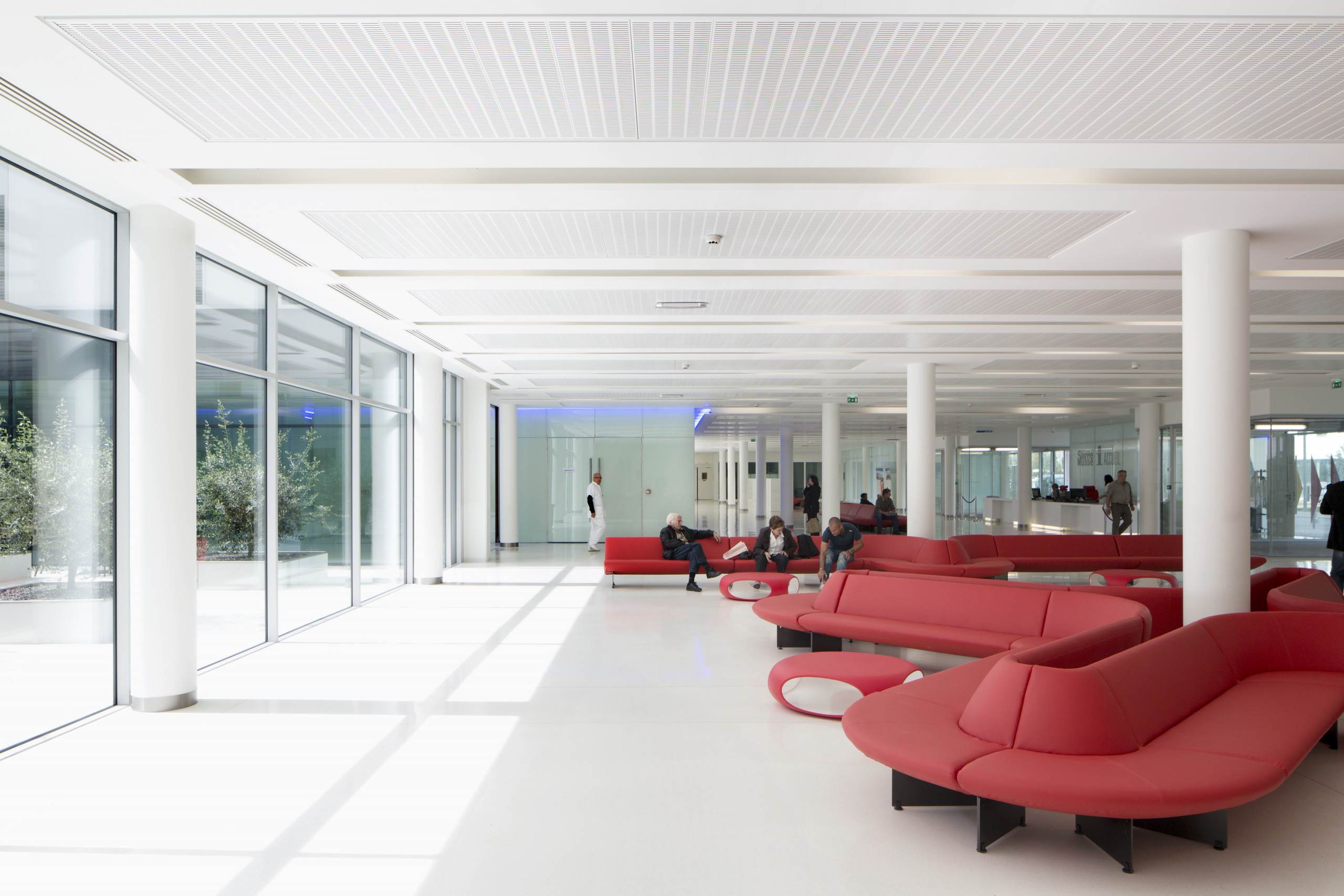 Par sa couleur blanche, il présente un caractère institutionnel. Neutre et pérenne. Économiquement raisonnable. L’architecture de l’hôpital se réfère aux palaces modernes des bords de la méditerranée, lieux de luxe, calme et volupté, lieux de villégiature où l’on vient chercher le repos, mais aussi l’inspiration, à la faveur de l’intensité chromatique et lumineuse, exceptionnelle, du Sud.