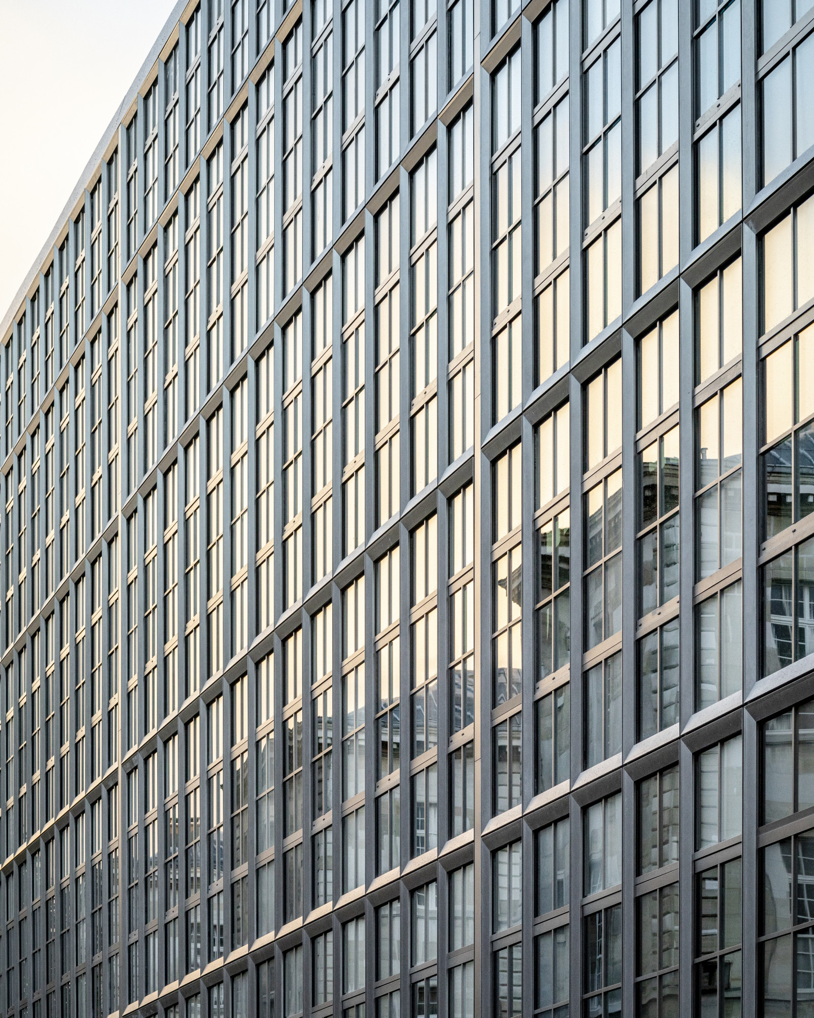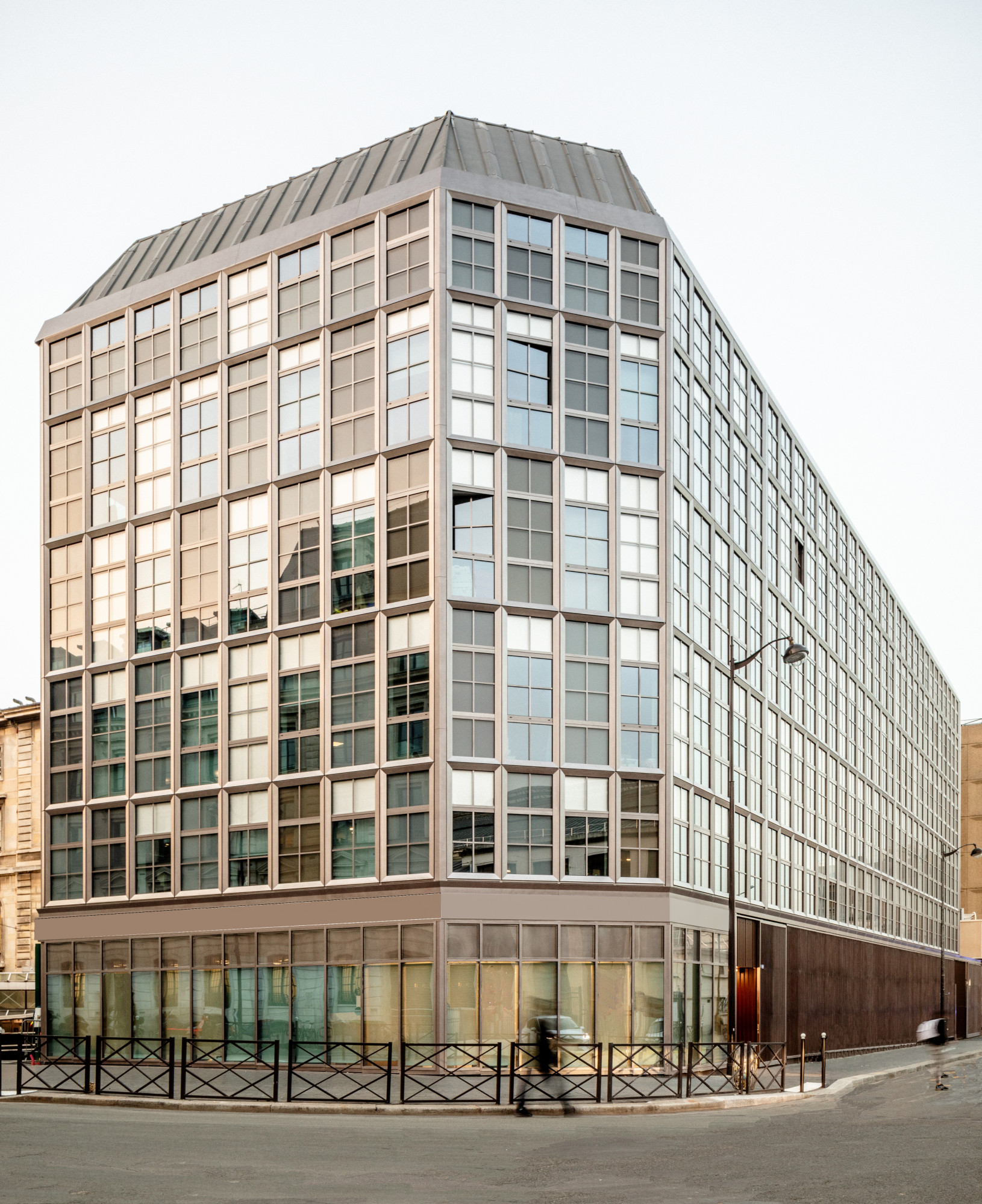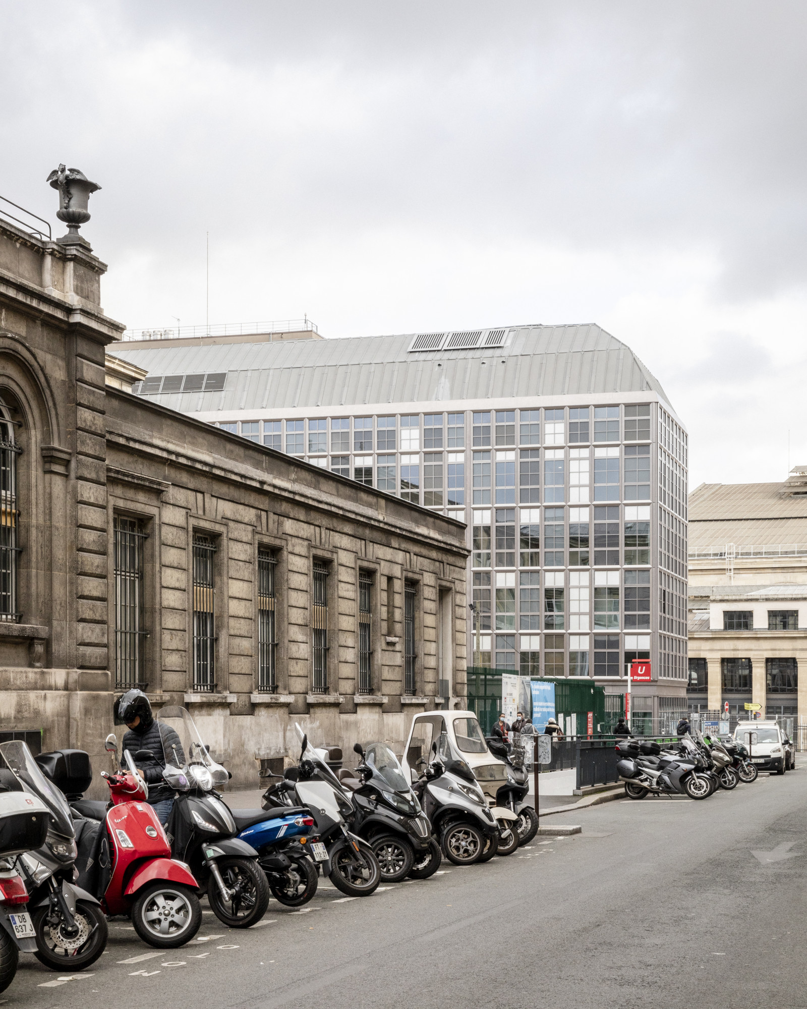À l’extrémité sud du site, à l’angle de rue de Maubeuge et de la rue Ambroise Paré, le Nouveau Morax constitue la première pierre de ce grand projet. Bâtiment indépendant destiné à accueillir les fonctions logistiques de l’hôpital, il adopte un gabarit parisien typique, recouvert d’une enveloppe de verre redécoupée selon une grille régulière. Il s’affiche ainsi comme une « lanterne », un signal paisible au coeur d’une situation urbaine riche et complexe.