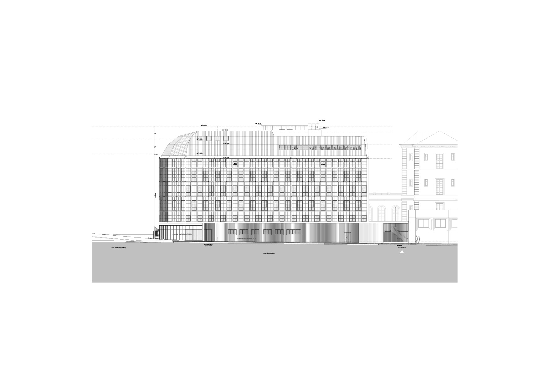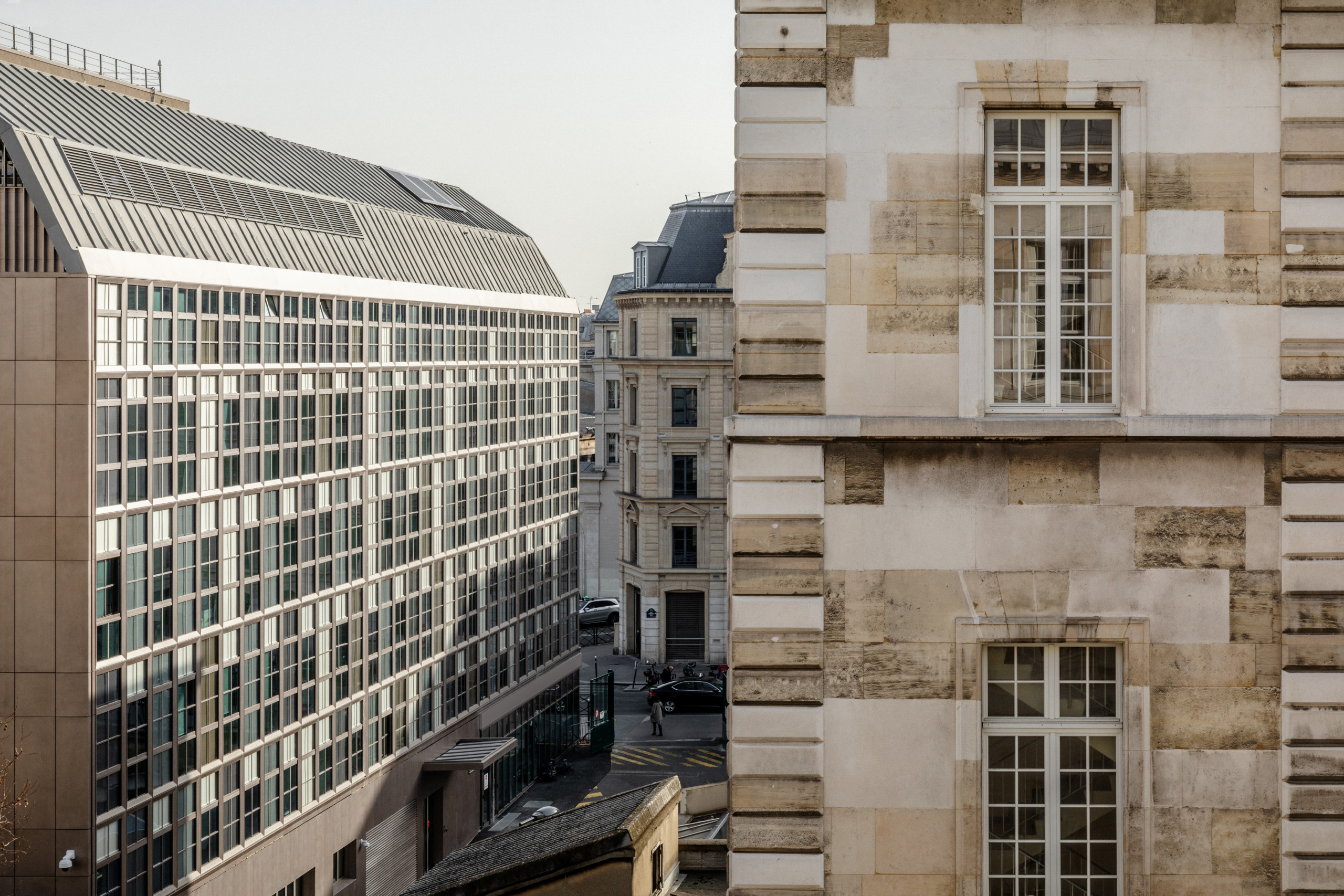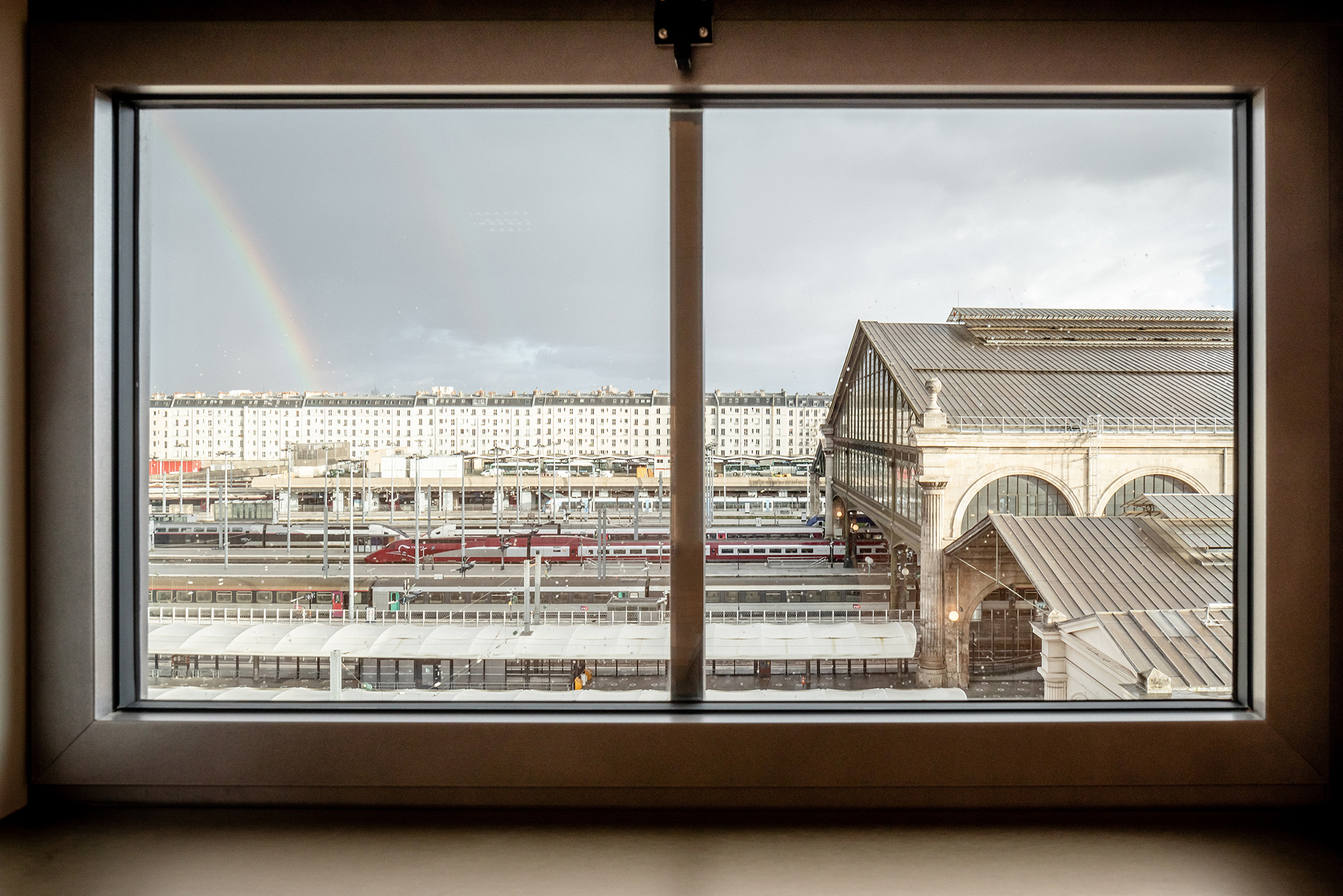 À l’extrémité sud du site, à l’angle de rue de Maubeuge et de la rue Ambroise Paré, le Nouveau Morax constitue la première pierre de ce grand projet. Bâtiment indépendant destiné à accueillir les fonctions logistiques de l’hôpital, il adopte un gabarit parisien typique, recouvert d’une enveloppe de verre redécoupée selon une grille régulière. Il s’affiche ainsi comme une « lanterne », un signal paisible au coeur d’une situation urbaine riche et complexe.