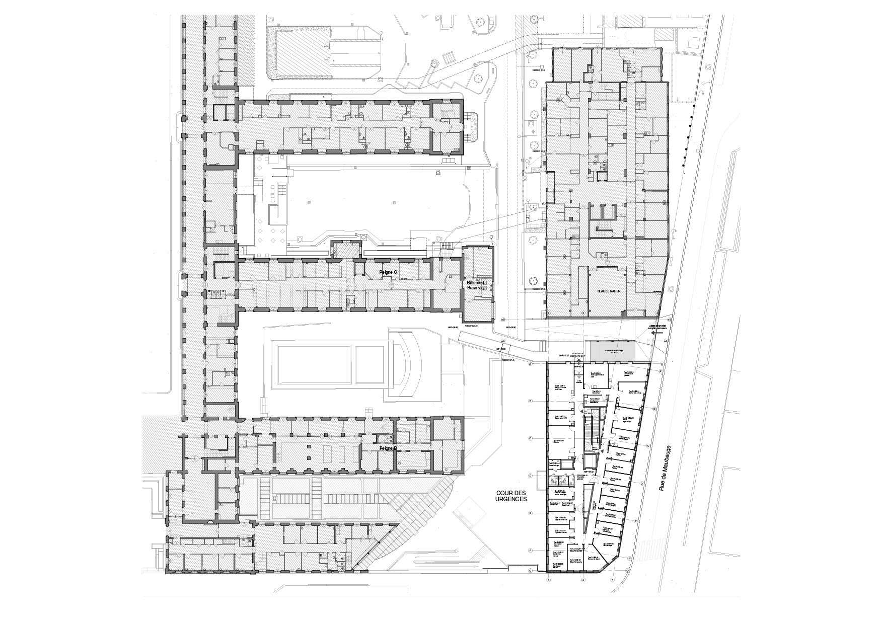 La restructuration de l’hôpital Lariboisière s’inscrit dans la stratégie hospitalière de l’AP-HP pour les Hôpitaux du Nord parisien. Alors que le site de Lariboisière a été construit à la frange de la ville du XIXe siècle, il se retrouve au coeur de celle du XXIe siècle. Jusqu’alors entouré d’une clôture le séparant du reste de la cité, le projet entend ouvrir l’hôpital sur la ville, créant ainsi une nouvelle dynamique entre l’espace public et l’espace hospitalier. Il s’agit d’une opportunité inédite de relier la ville et l’hôpital et d’imaginer un nouveau modèle de bâtiment hospitalier, plus urbain et plus humain, tel un jalon qui continue l’histoire écrite sur ce site depuis 1854.