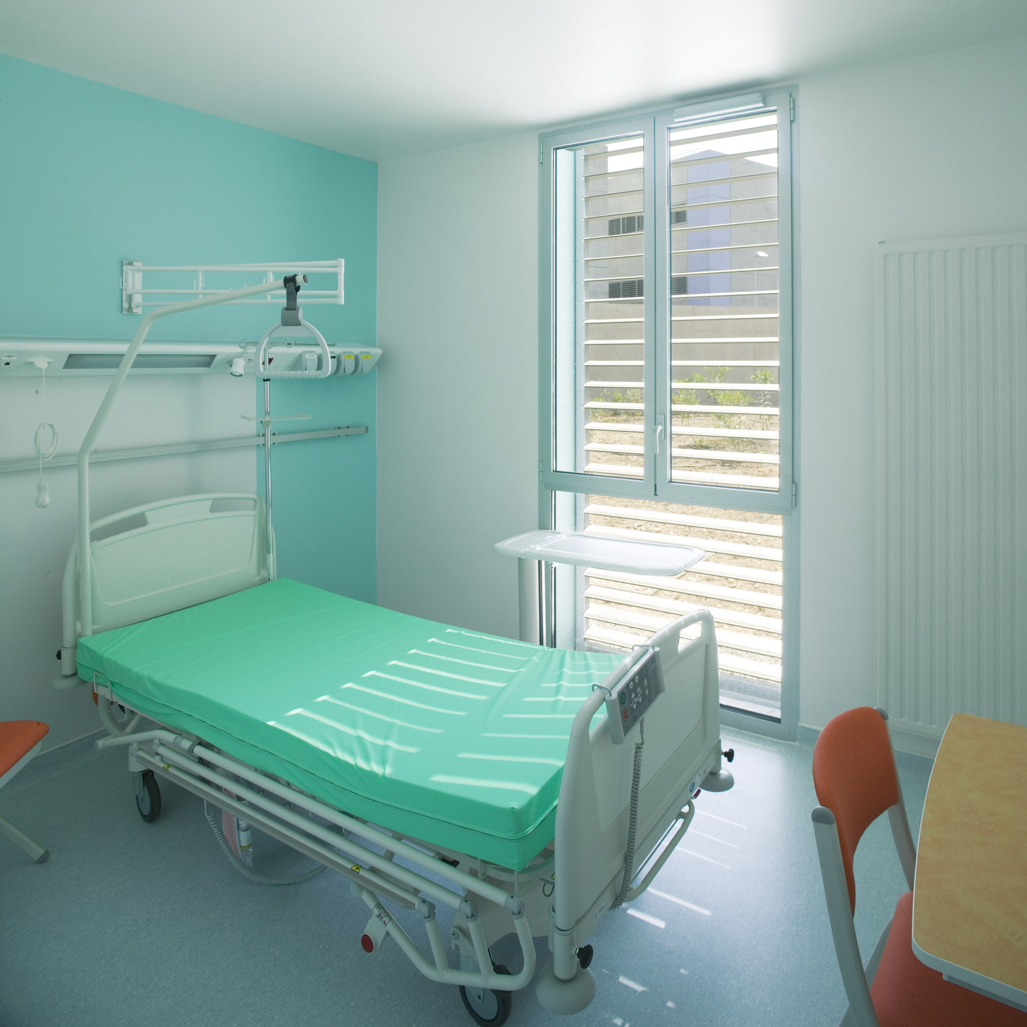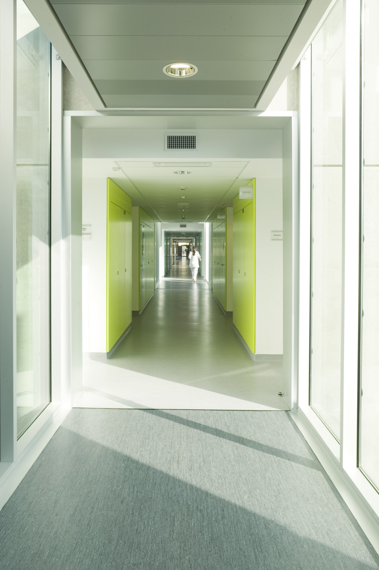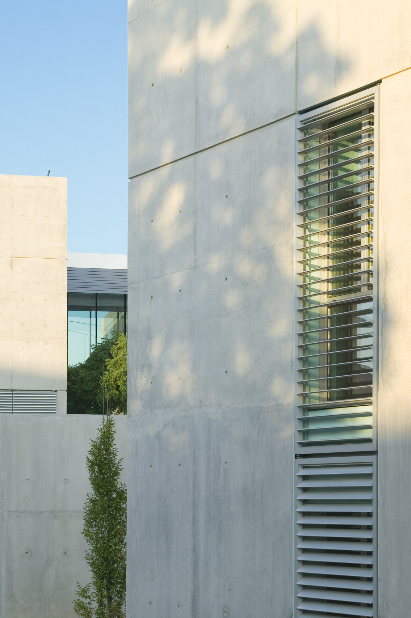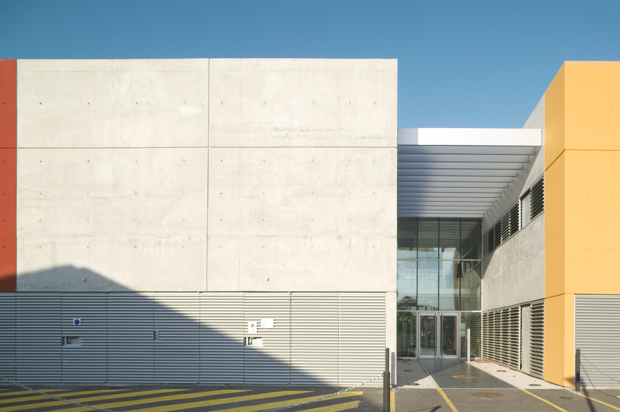 Ce dernier adopte une configuration en «peigne», formé de six «barrettes» parallèles implantées perpendiculairement à la courbe de la rue. Trois sous-ensembles indépendants y prennent place autour d’une plateforme commune: les laboratoires du CHU, de l’INSERM, et de sociétés privées. Les façades sont constituées d’une structure en béton architectonique avec isolation par l’intérieur. Les fenêtres filantes des laboratoires et des bureaux donnent sur des cours arborées. Le calepinage soigné du béton, laissé brut, ou peint ponctuellement de couleurs vives, et le rythme régulier des percements protégés par des brise-soleil extérieurs ou des ventelles confèrent à l’ensemble son unité et sa singularité.