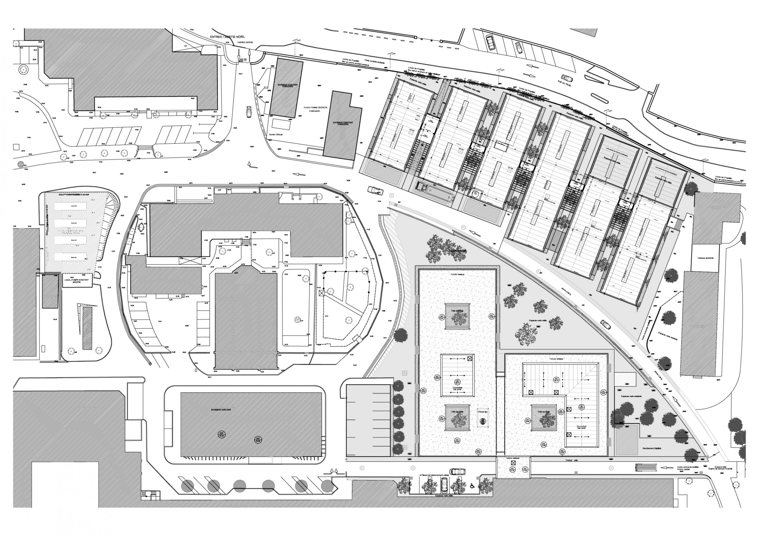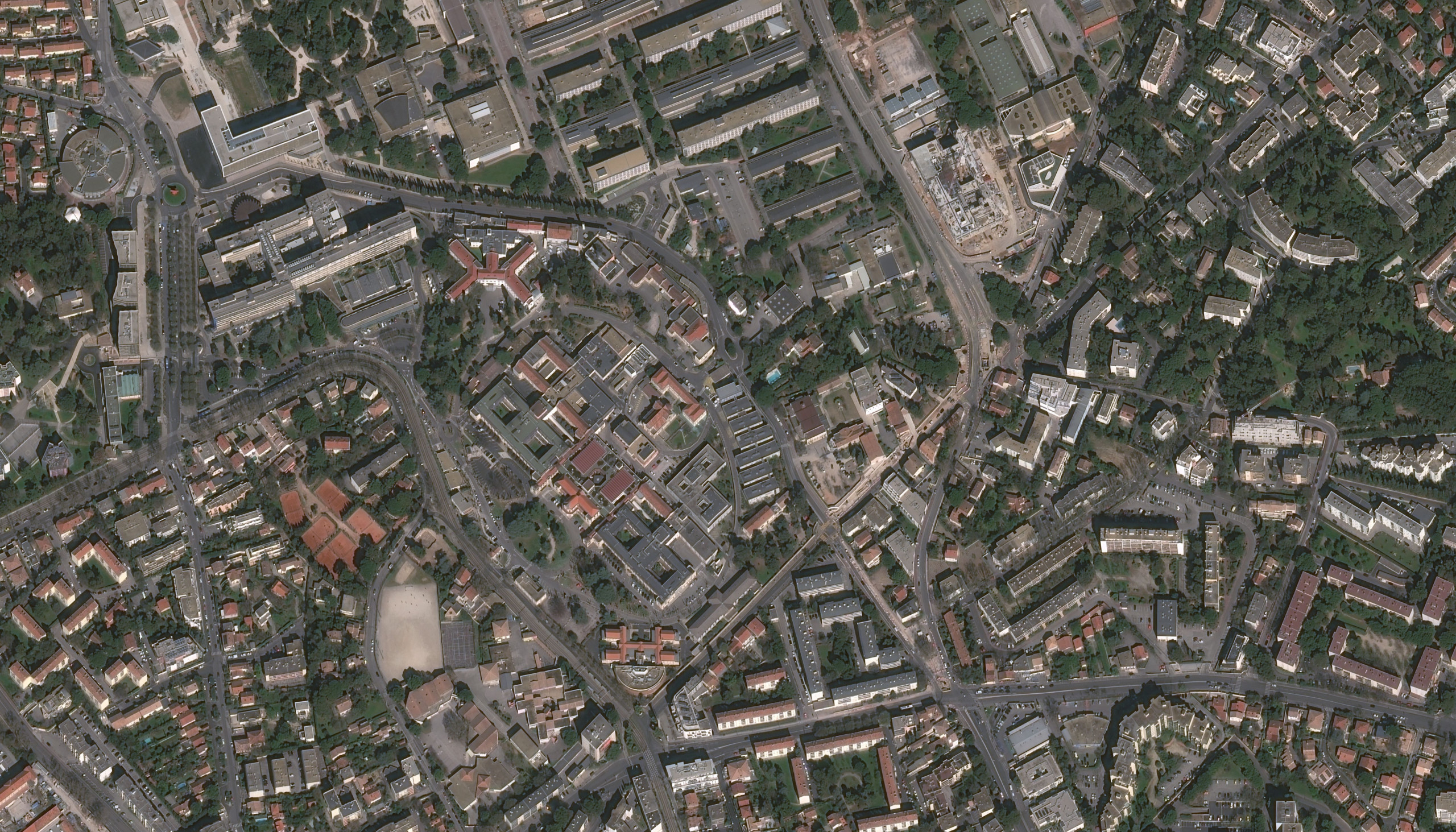 Le Site de Hôpital Saint-Eloi se caractérise par un ensemble bâti situé en position centrale, ceint d’une voirie circulaire distribuant des bâtiments disparates et satellisés en limite de propriété et insérés dans des enclaves végétales. Le projet comprend la création de deux ensembles distincts: à l’intérieur de la voirie circulaire, l’extension du plateau technique en prolongement de l’existant; à l’extérieur, l’Institut Régional de Biothérapie.